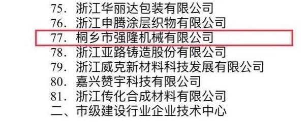 Jiaxing Municipal People's Government Office påpekte tydelig at for å videre implementere den innovasjonsdrevne utviklingsstrategien, styrke konstruksjonen av bedriftsteknologiske innovasjonssystemer, forbedre den teknologiske innovasjonsevnen og -nivåene til foretakene og fremme økonomisk transformasjon og oppgradering. Derfor har Jiaxing Municipal People's Government vurdert 84 foretak som Jiaxing Municipal Enterprise Technology Center for 2017. Det er en ære at vårt firma-Tongxiang Qianglong Machinery Co., Ltd. er på listen.