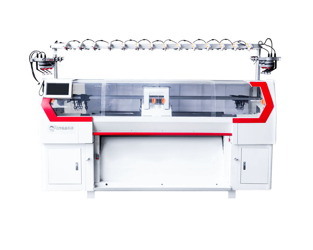Den inkluderer også et nytt kamsystem som eliminerer behovet for kobling og sying. Den har også en fleksibel trekkanordning som fungerer sammen med hjelperullen og kammen for å forbedre stoffspadenålenes evne til å møte kravene til strikking for å forme mønstre.